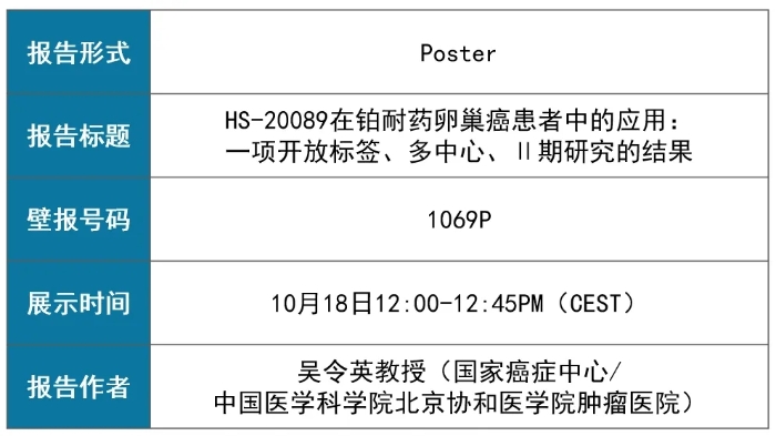 以上HS-20089 研究结果将于2025年国际妇科癌症协会全球年会(IGCS 2025)上以口头报告的形式再发表,该会议将在2025 年 11 月 5-7 日在南非开普敦世纪城会议中心举行。