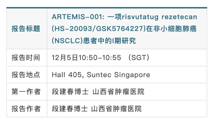 ARTEMIS-001是一项针对中国成年晚期实体瘤患者的I期临床研究,分为开放标签的剂量递增(Ia部分)和剂量扩展(Ib部分)。在该研究中,对于接受标准治疗后病情进展或无法耐受标准治疗的非小细胞肺癌(NSCLC)患者,将接受risvutatug rezetecan治疗,剂量为8.0 mg/kg或10.0 mg/kg,每3周给药1次,直至疾病进展、出现不可耐受的毒性、患者失访或死亡。Ia期的主要终点是MTD/MAD,Ib期的主要终点是研究者根据RECIST v1.1标准评估的客观缓解率(ORR)。