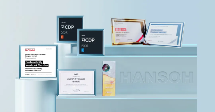 凭借在ESG领域的持续深耕与优秀表现,翰森制药近年来获得全球权威ESG评级机构广泛认可在标普全球(S&P Global)最新发布的《可持续发展年鉴2026》中,翰森制药再次入选,并在标普全球企业可持续发展评估(CSA)中评分持续提升,五度蝉联中国制药行业第一此外,公司连续荣登CDP气候变化与水安全“双B级”榜单,并荣获“福布斯中国ESG50强”“中国医药上市公司ESG竞争力榜单”“ESG先锋奖”等多项权威认证与荣誉。