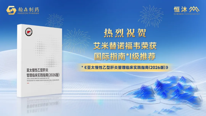 2026年4月22-25日,亚太肝病学会(APASL)年会在伊斯坦布尔隆重召开,大会重磅发布《亚太慢性乙型肝炎管理临床实践指南(2026版)》(以下简称:APASL指南)[1],由翰森制药自主研发的中国首个原研口服抗乙肝病毒药物恒沐®(艾米替诺福韦,TMF)被首次纳入该指南并获I级推荐。