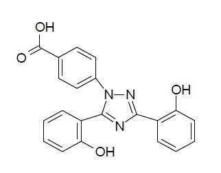 | 【成份】 | 本品 主要 成份为地拉罗司 。 化学名称: 4-[3,5-双(2-羟基 苯)-1H-1,2,4-三唑 -1-基]-苯甲酸 化学结构式: